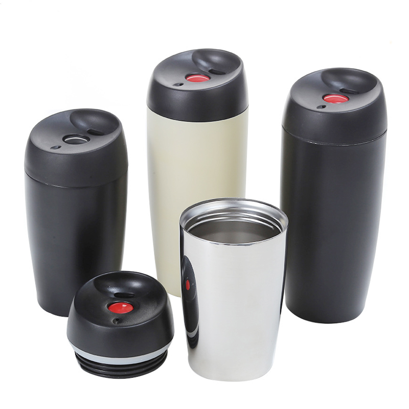 Kemudahalihan dan kemudahan penggunaan: mudah dibawa dan sangat praktikal. Tudung cawan dilengkapi dengan butang merah, yang boleh dikendalikan dengan satu sentuhan untuk membuka tudung untuk minum mudah.
