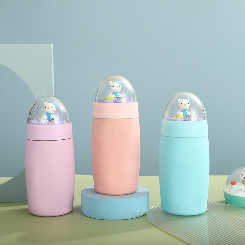 Warna penampilan segar dan bersih. Bahagian atas tudung cawan direka sebagai bentuk hemisfera yang telus, dengan imej kartun di dalam, mewujudkan kesan landskap mikro, yang cantik dan menarik, sesuai untuk pengguna yang suka gaya comel.