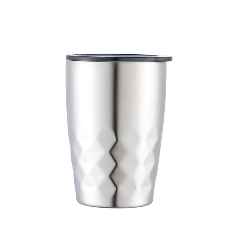Cawan keluli tahan karat ini mempunyai reka bentuk vakum, menjadikannya sesuai untuk kegunaan mudah alih dalam persekitaran kereta. Ia mengekalkan suhu dengan berkesan, sama ada untuk minuman panas atau sejuk, dan juga boleh berfungsi sebagai cawan kopi. Tubuh cawan menggabungkan elemen reka bentuk berbentuk berlian, menggabungkan kepraktisan dengan rayuan estetik. Sempurna untuk pelbagai kesempatan, ia memenuhi permintaan untuk pemeliharaan suhu minuman yang mudah dan penggunaan mudah.