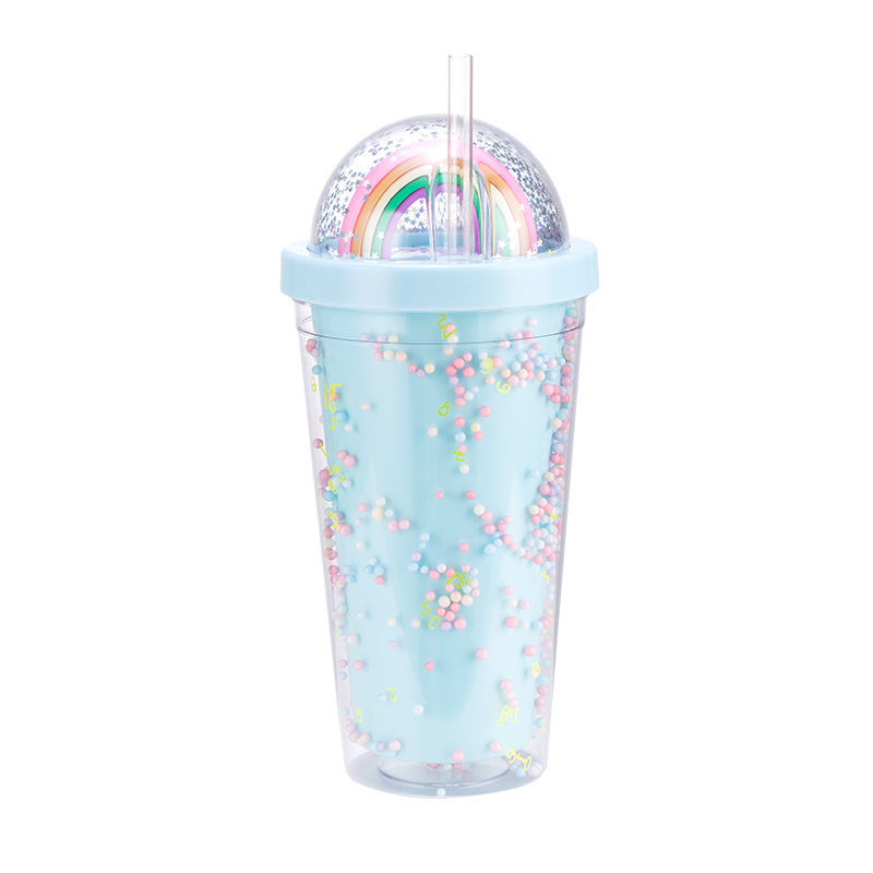 Rainbow Bubble Straw Cup Jus Minuman Sejuk Tumbler Plastik
